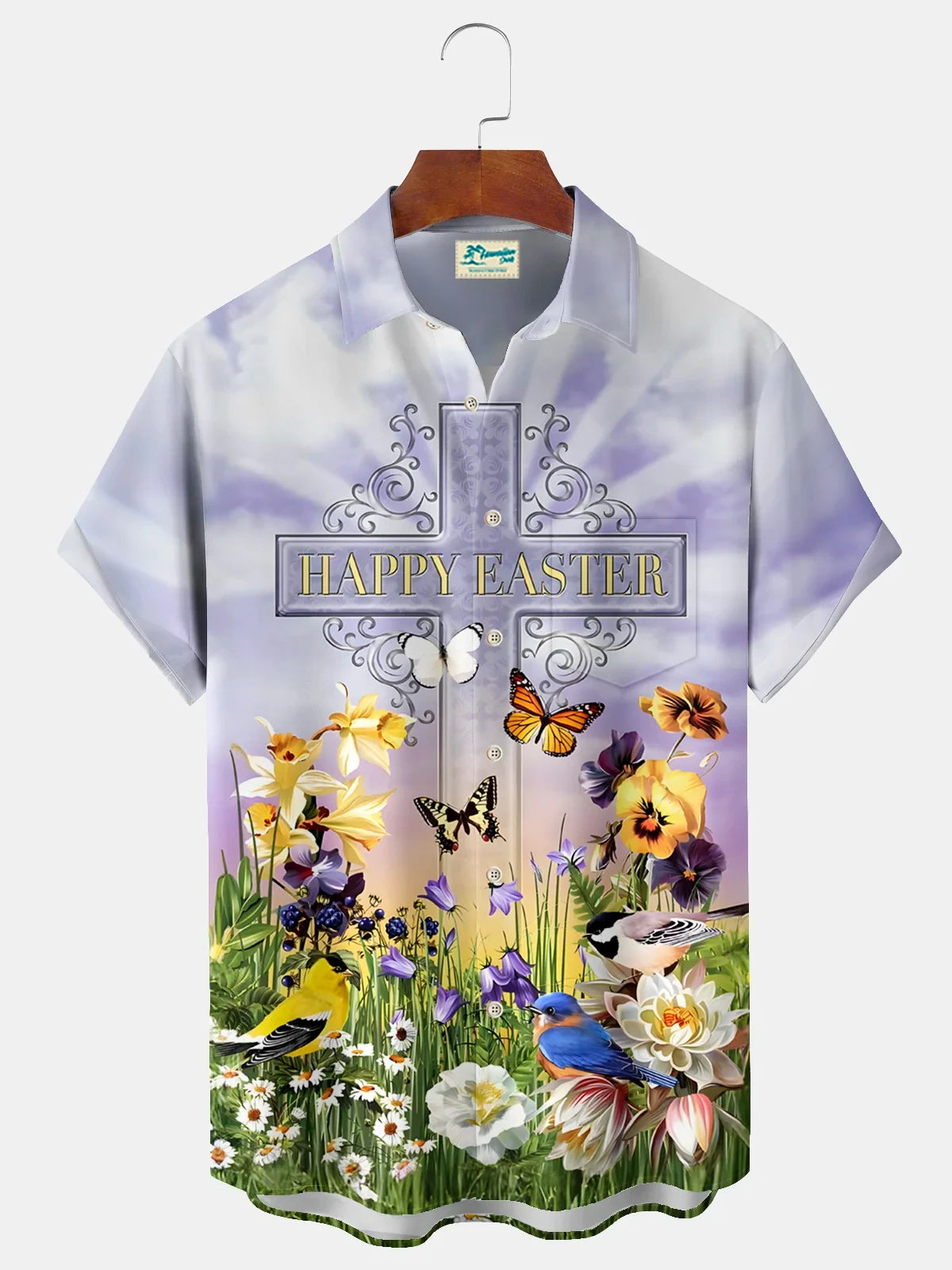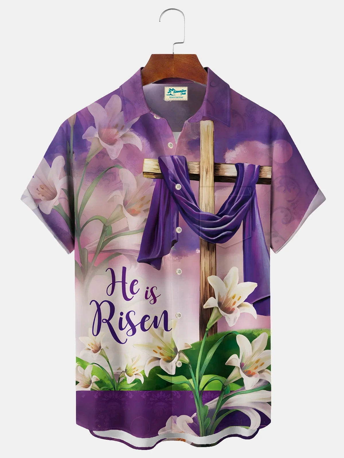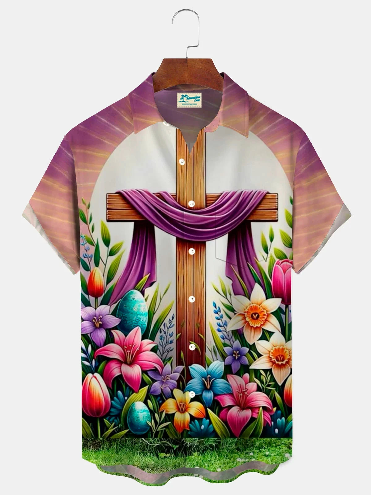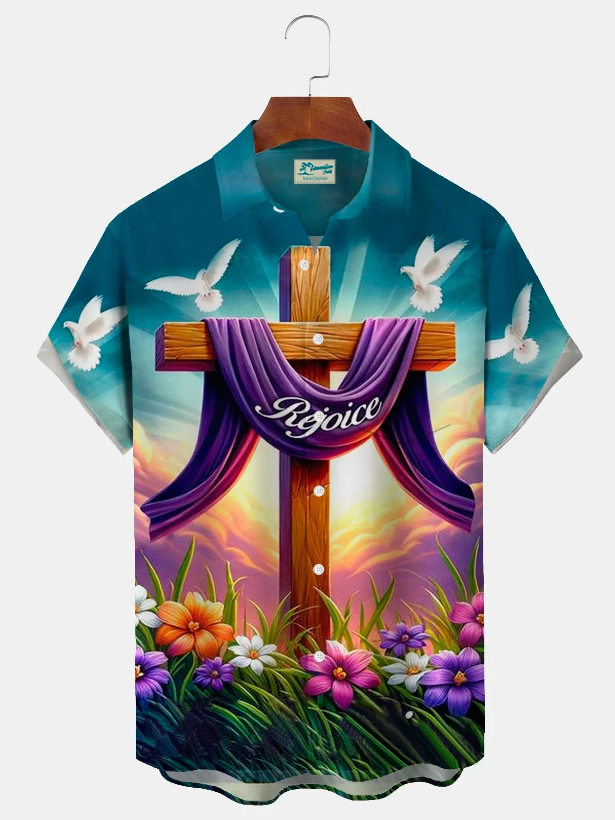 Celebrate faith and style this season with the Easter Cross of Jesus Men’s Short Sleeve Shirt. Designed with a casual Hawaiian-inspired look, this oversized button-down is made from a lightweight polyester-spandex blend that keeps you cool and comfortable in summer. Featuring a bold digital cross pattern, it’s the perfect blend of casual fashion and meaningful design.