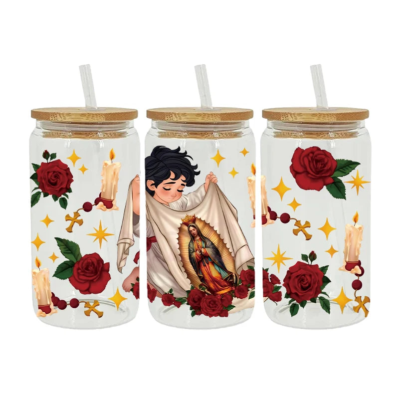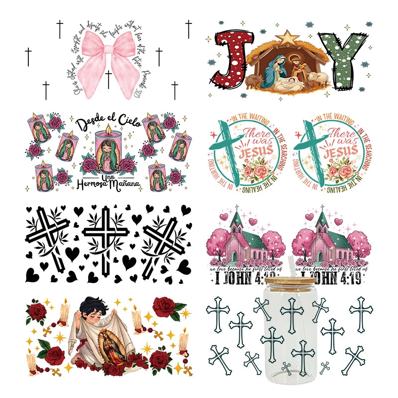 Add a touch of faith and style to your favorite glassware with this UV DTF Transfer Sticker. Designed to perfectly fit 16oz Libbey glasses, bottles, cups, and cans, this waterproof and durable decal is ideal for DIY projects, personalized gifts, or everyday use. With its self-adhesive backing, it’s easy to apply and built to last, making it a creative way to customize your drinkware while sharing inspiration.